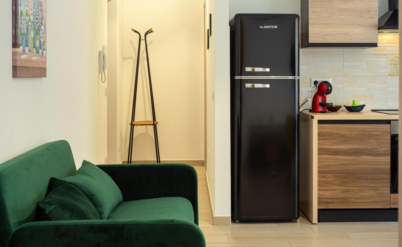 One-Bedroom Apartment. This air-conditioned apartment consists of 1 living room, 1 separate bedroom and 1 bathroom with a shower. In the kitchen, guests will find a stovetop, a refrigerator and an oven. This apartment features a tea and coffee maker, flat-screen TV with streaming services, a quiet street view, as well as chocolate for guests. The unit offers 2 beds.